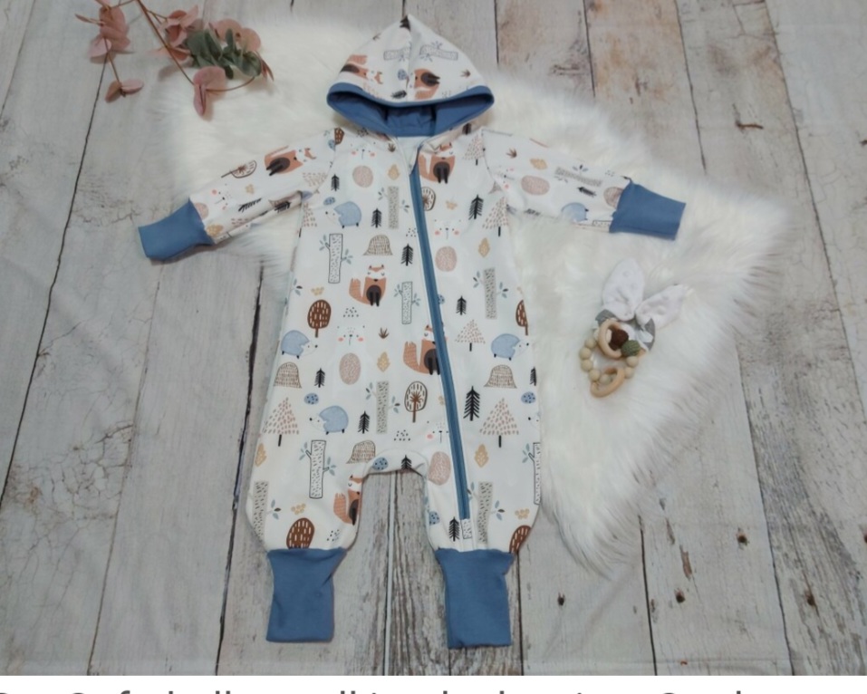 2. Ein zentraler Reißverschluss, der bis zum Schritt reicht und verhindert, dass ein störender Reißverschluss in der Kniebeuge beim Krabbeln vorhanden ist.